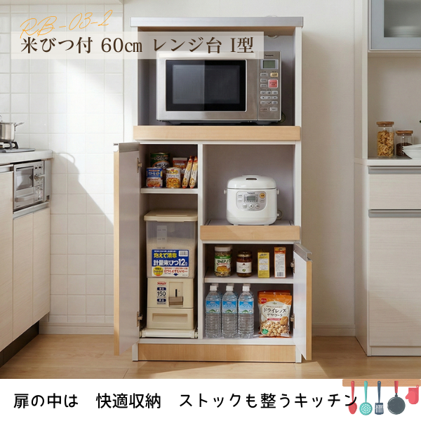 完成品で組立不要!12キロの米びつ付き国産レンジ台!