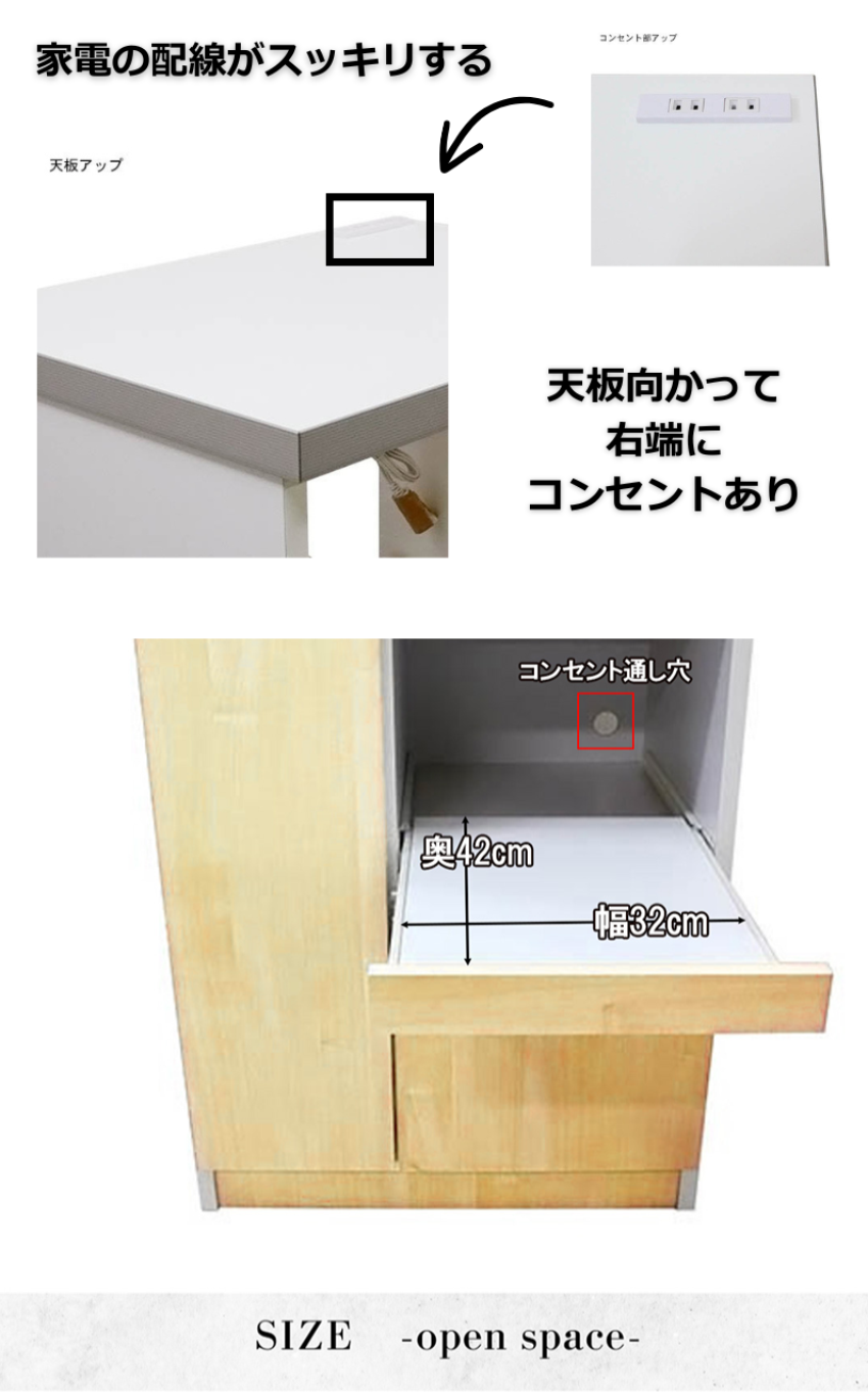 | 注意事項 | ■コンセント位置:天板上 |