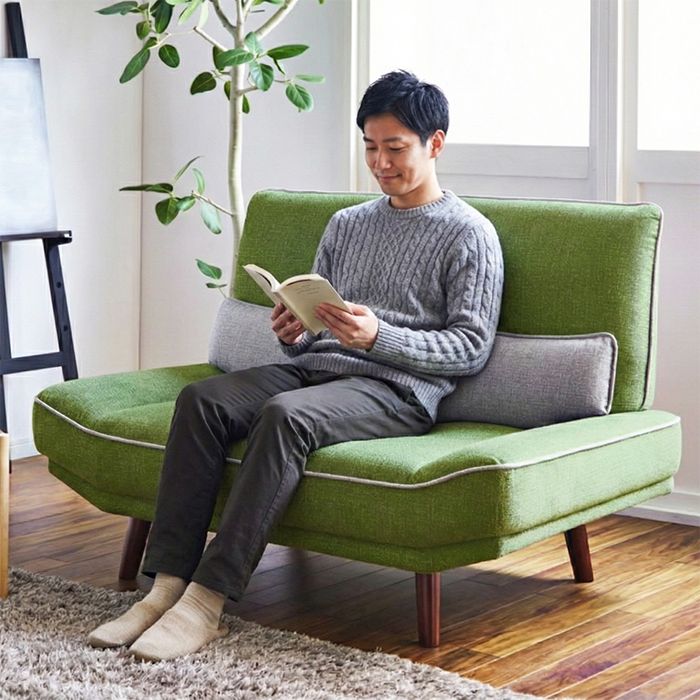 ●枕替わりにもなる肘掛け部のあしらいで、ペットと寝転がりながらのんびりとくつろぐのもおすすめ