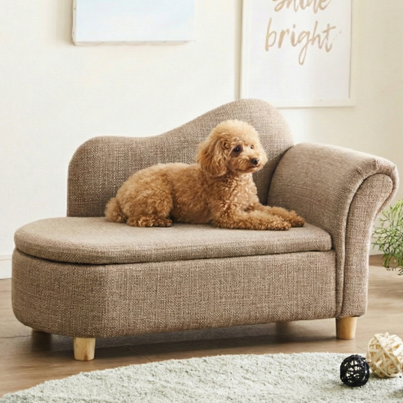 引っかき傷に強い特殊生地仕様!座面収納庫付でペットシートやペットおもちゃも収納可能!可愛いペットソファー!