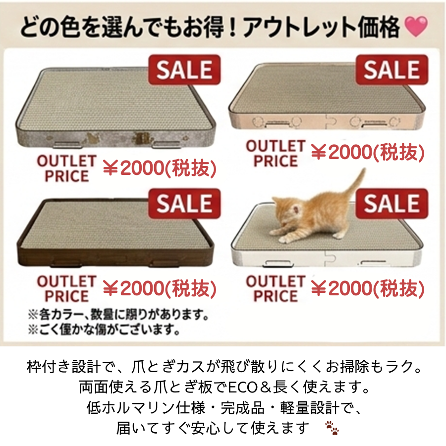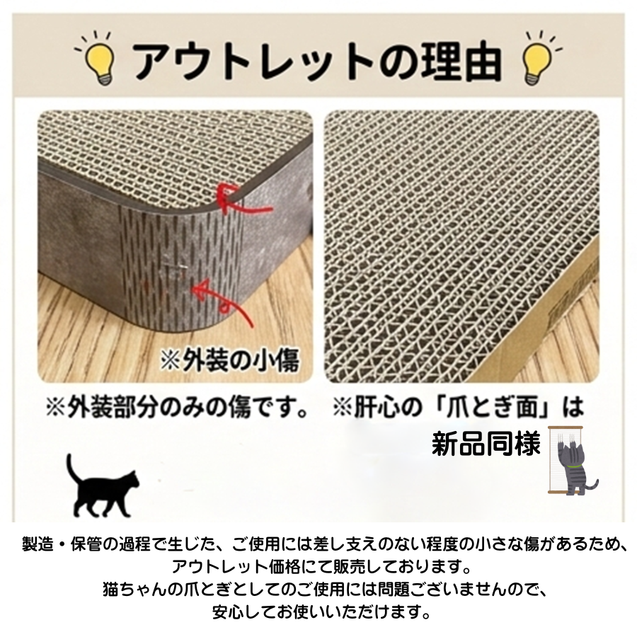 【OUTLET品】アウトレットの理由、ご使用に支障のない程度の傷、猫ちゃんのご