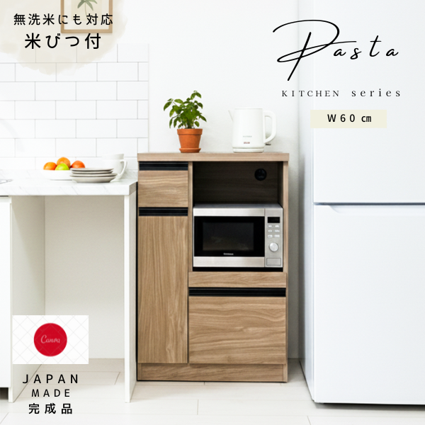 60レンジ台 パスタ 米びつ付