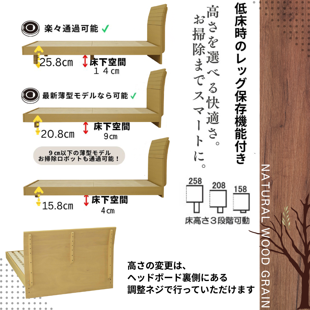 選べる2つの木目、暮らしに寄り添うベッド