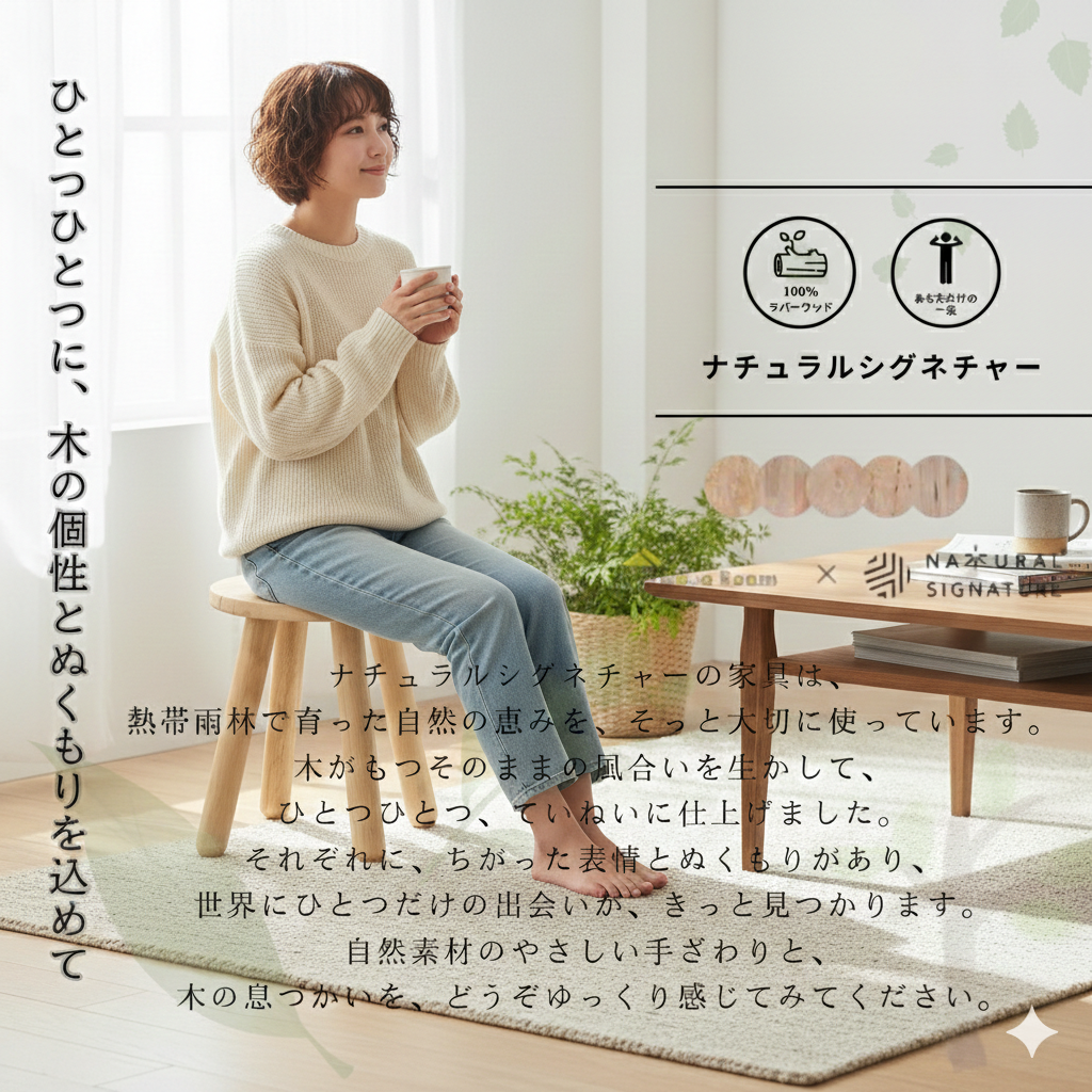 | 素材 | - 材質:天然木ラバーウッド無垢材 - 塗装:ラッカー塗装 ※2段階の継ぎ脚仕様です。継ぎ脚を外して脚をねじ込むだけで、机の高さを低くできます。 |