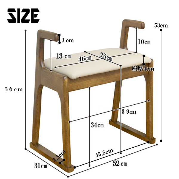 | サイズ | 商品サイズ:W51×D31×H53cm 梱包サイズ:W55×D33×H60cm 座面高:45cm 運送会社:佐川急便/ヤマト運輸 |