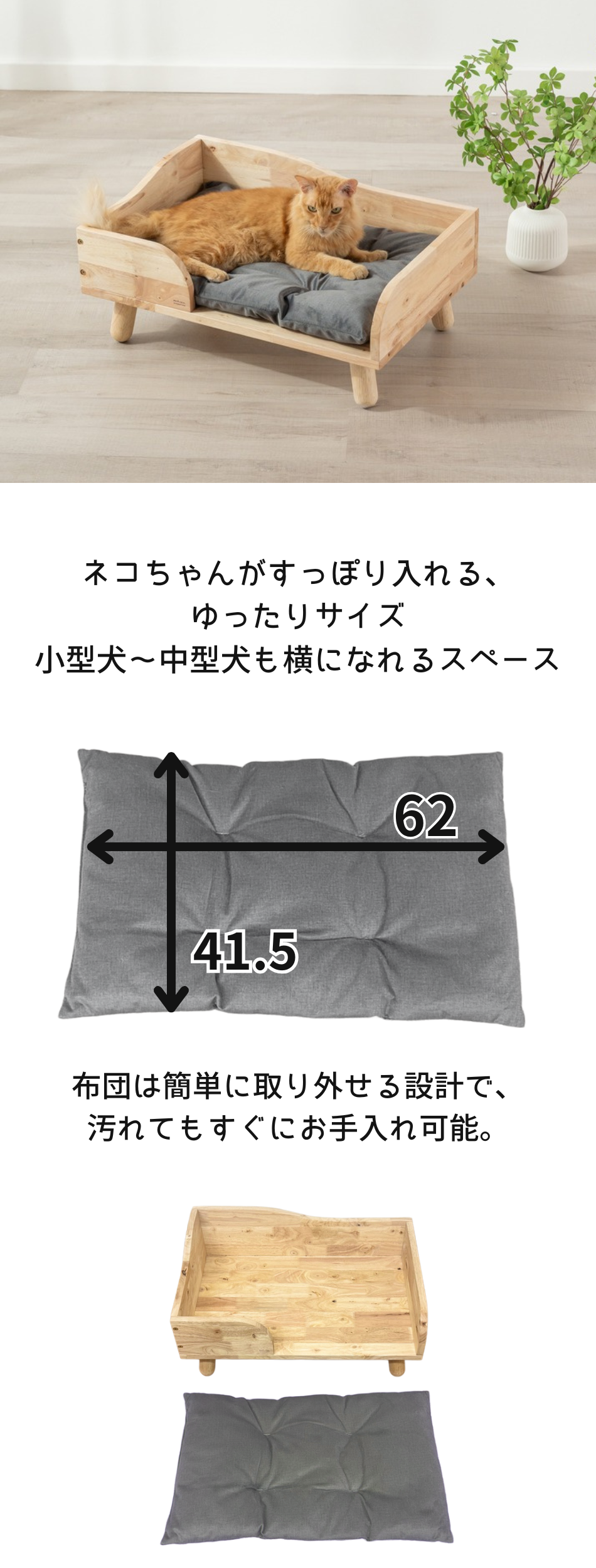 幅64cm×奥行44cmのゆったりサイズで、ネコちゃんがすっぽり入ってくつろげる快適空間。
