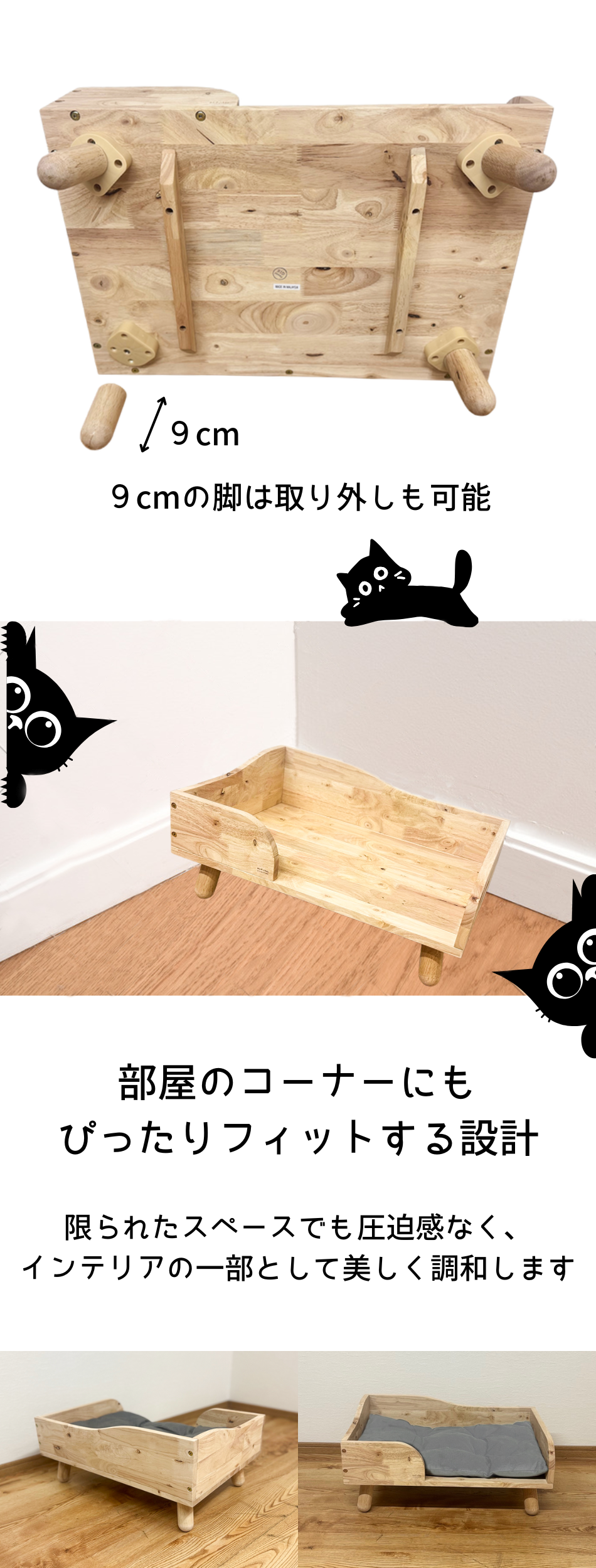 天然ラバーウッドの無垢材のネコベッド【NATURALSIGNATUREシリーズ】