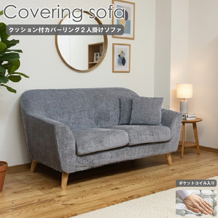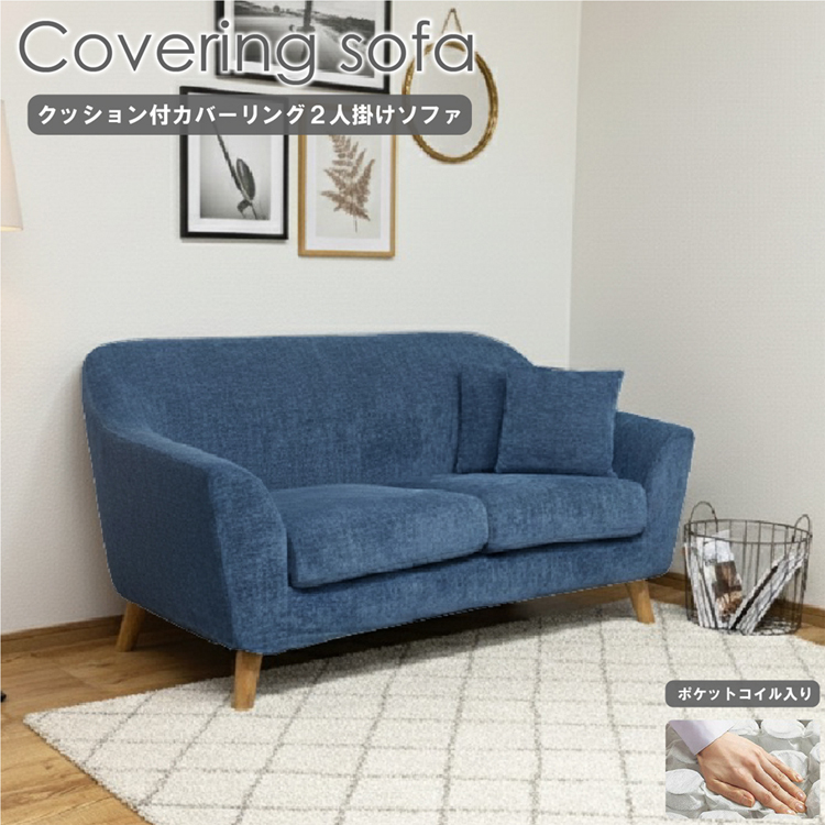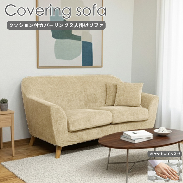 カバーリング座面ポケットコイル入り2人掛けソファ!