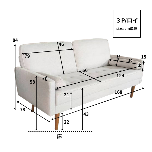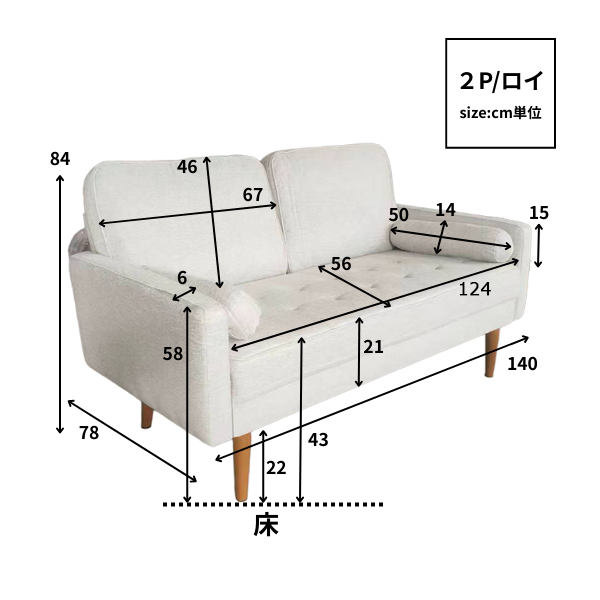 | サイズ | (製品サイズ)cm単位 2Pソファ:幅140 ×奥行78×高さ84×座面高43 3Pソファ:幅168×奥行78×高さ84×座面高43 (梱包サイズ)cm単位 2Pソファ:127 × 59 × 29 3辺合計215 重量26kg 3Pソファ:159 × 59 × 26 3辺合計244 重量33kg 運送会社:佐川急便 |