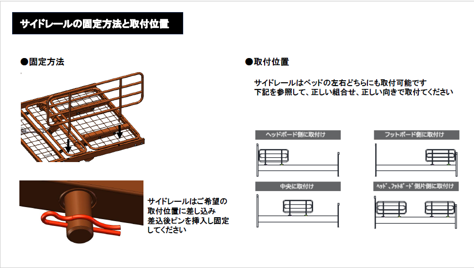 安全性と利便性: サイドレールは2本付属。転落防止や介助のしやすさをサポートします。