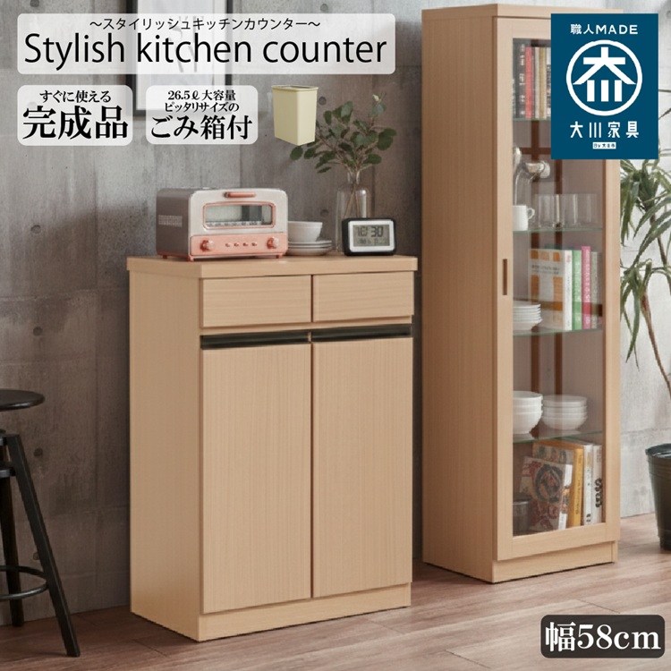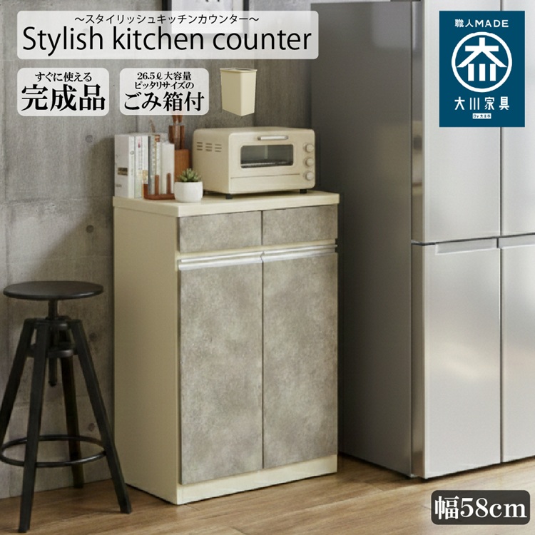 組立不要の完成品!ダストBOX付きキッチンカウンター!