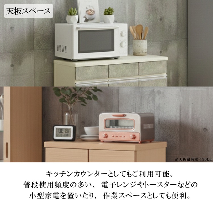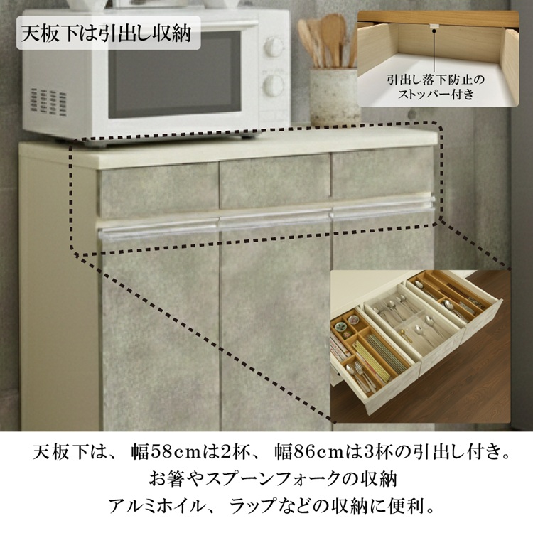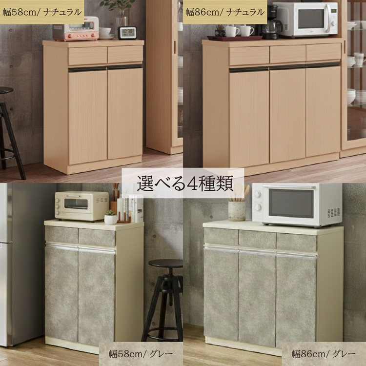 | サイズ | 幅58cmカウンター:W57.5×D39×H86cm 梱包サイズ:60×42×88cm(3辺合計:182cm) 梱包重量:21.8kg 幅86cmカウンター:W86×D39×H86cm 梱包サイズ:89×42×88cm(3辺合計:219cm) 梱包重量:32.3kg |