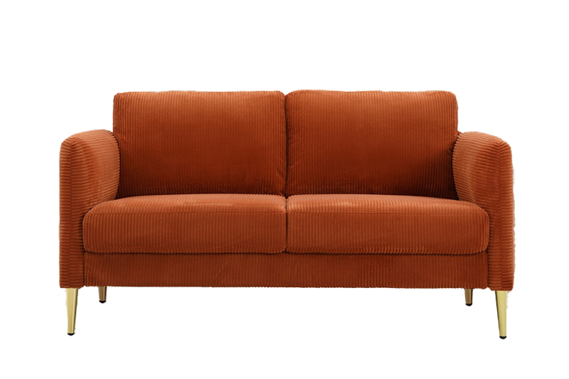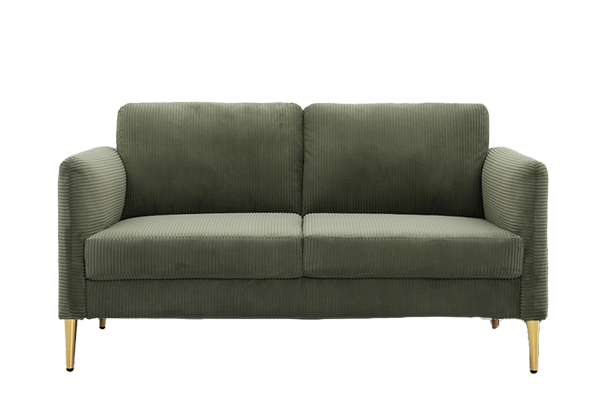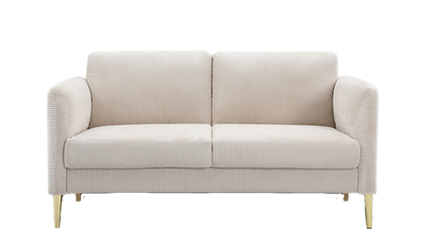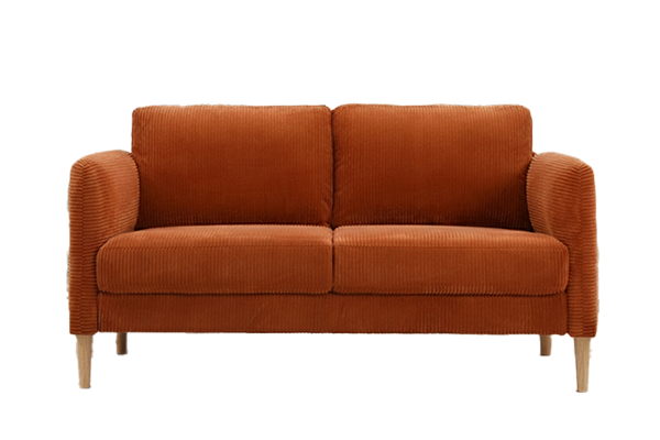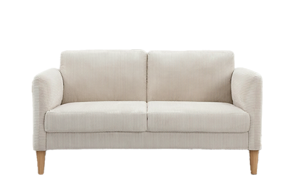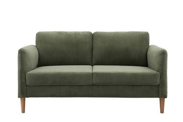 コーデュロイ生地のやさしい風合いと、 高めの脚が空間にほどよい華やかさを添えるソファ。