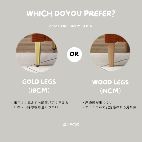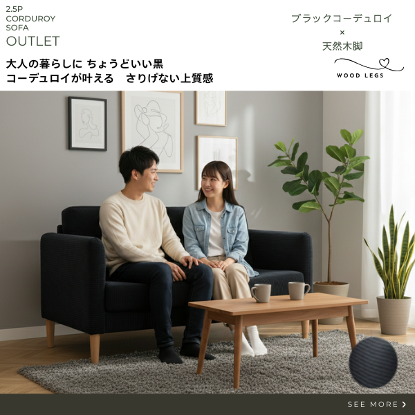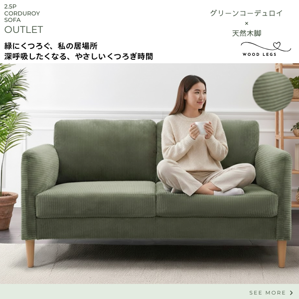 コーデュロイのぬくもりに、選べる脚デザイン アウトレットだから叶う、うれしい価格。