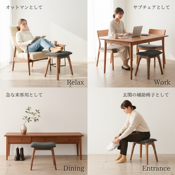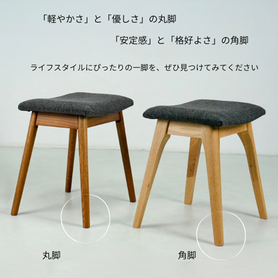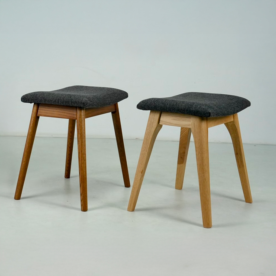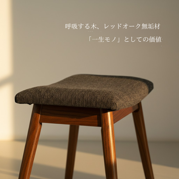 レッドオーク無垢材を使用した、シンプルで洗練されたスツール。