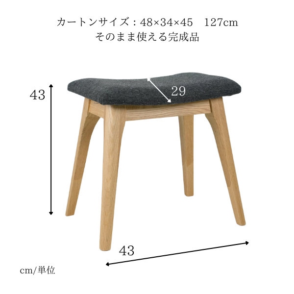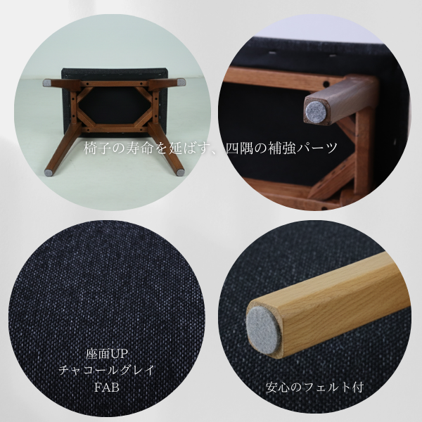 | 素材 | ・レッドオーク無垢材(水性アクリル塗装) ・ウレタンフォーム(中材) ・積層合板(座面) ・ポリエステル100%(張地) |