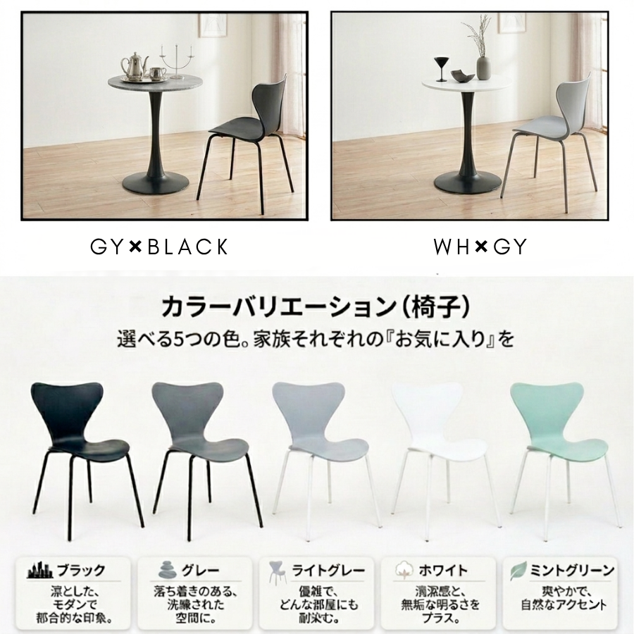 長く愛され続ける人気チェアをセットに。 カフェテーブル3点SET